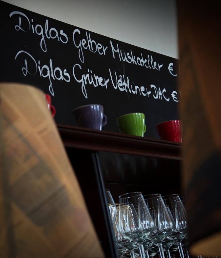 Und wenn Sie nach einem langen Tag entspannen wollen? Dann sind Sie im Café Diglas in der Wollzeile bestens aufgehoben. Ab 19 Uhr begleitet Sie unser Pianist mit dezenter Klaviermusik im Hintergrund und lässt Sie den stressigen Alltag bei einem Glas unseres eigenen Weines – einem Weißburgunder, Muskateller oder Weinviertel DAC – schnell vergessen. Auf Ihr Wohl!